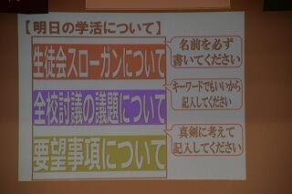 生徒会活動報告、専門委員会年間計画などを考えます。