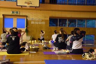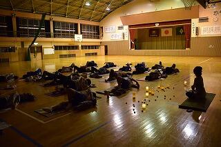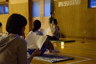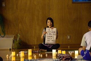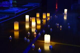 体育館にキャンドルのライトだけが点灯する中、参加者が集まってきました。