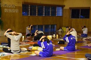 6月21日(金) 本年度のPTA活動の一つ、家庭教育学級で「ヨガ教室」が行われました。保護者・職員・生徒合わせて23名が参加しました。