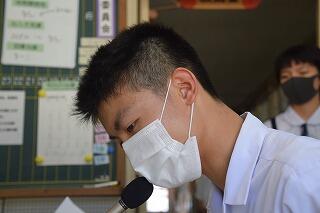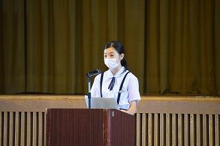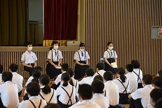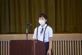 それぞれの学年代表の生徒が、この1学期を振り返ってしっかりとできたことや頑張ってきたこと、これから意識していきたいことを話しました。