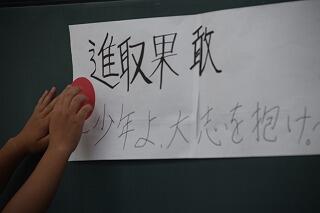 どの色の団になるのか、毎年わくわくする場面です。体育大会のスローガンに貼る学級もありました。