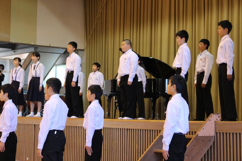 合唱コンクール、吹奏楽演奏、理科自由研究展示、習字、風景画、デザイン画です。