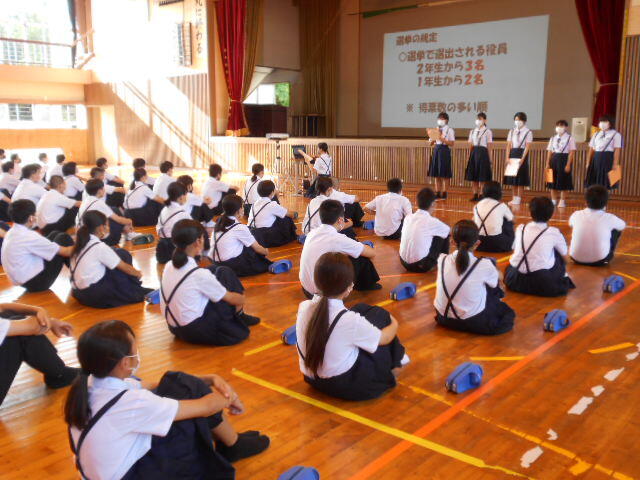 8月30日(火)の生徒集会で「生徒会選挙告示」が行われました。