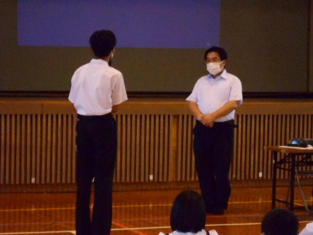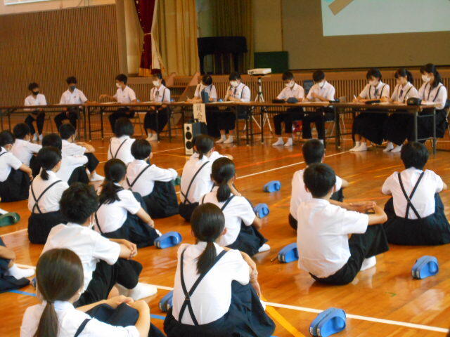 1年生は「あいさつについて」2年生は「校則について」です。