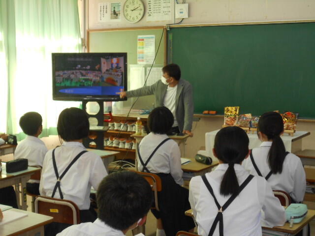 10月18日(火)の総合的な学習の時間に地域伝統芸能活動を行いました。