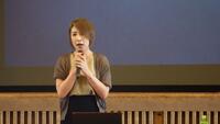 今年の講師は、岩倉ひとみ先生でした。看護師として勤務後、IT関係の民間企業に就職し、宮崎市内の小学校で情報アドバイザーとして勤務の後、現在は、飲食業を営むという異色の経歴の持ち主です。