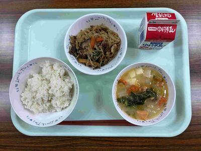 〈 麦ごはん 牛乳 高野豆腐と昆布の炒り煮 ひじきとごぼうのサラダ 〉