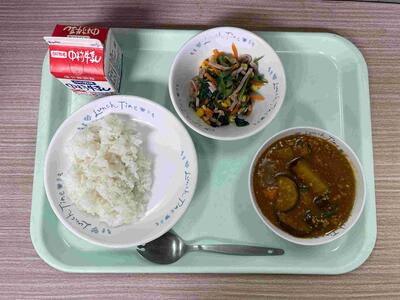 < 夏野菜カレー 牛乳 ほうれん草のサラダ >