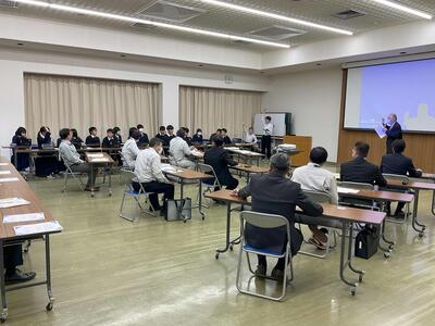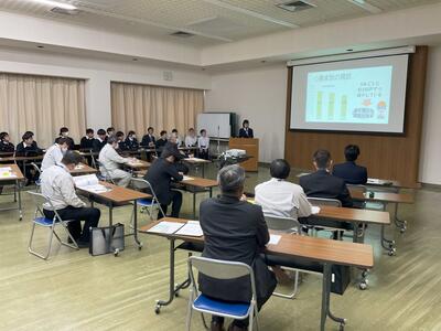11月14日(金)に2年生が企業との意見交換会を実施しました。お越しいただいた企業は、株式会社興電舎様、株式会社桝元様、フェニックスリゾート株式会社様です。仕事内容等に加え、理念などについてもお話しいただき、生徒からも多くの質問を投げかけました。前週に職場体験を行っている中で、今までと違う職業観があり、多くの学びがありました。大変お忙しい中、ご講話いただきました企業の皆様、ありがとうございました。