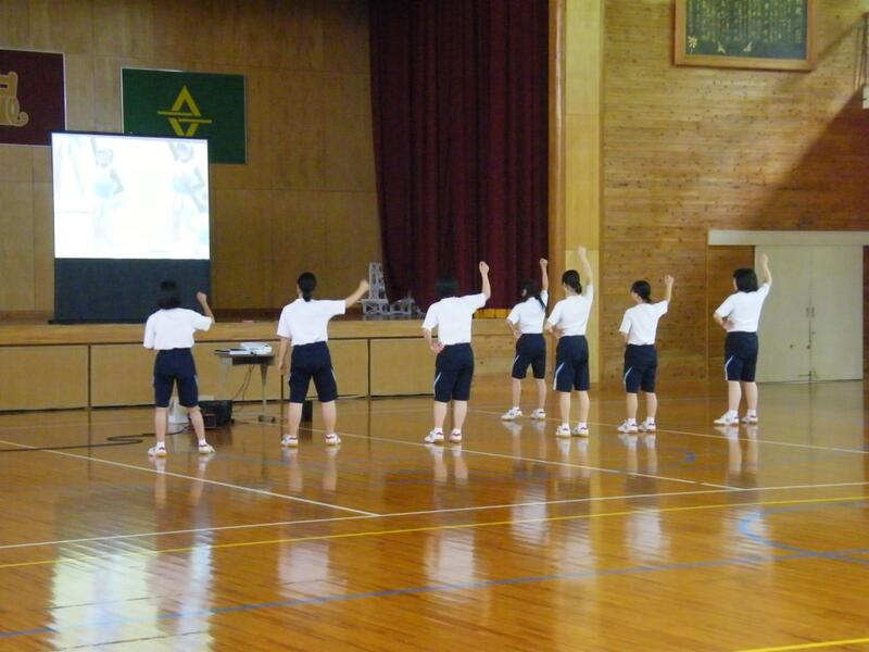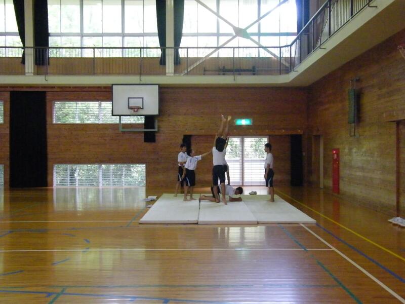 3年生の体育の授業中です。9月の体育祭に向けて男子は組み体操、女子はダンスの練習をしています。どちらも良いものをつくりあげようと真剣でした。