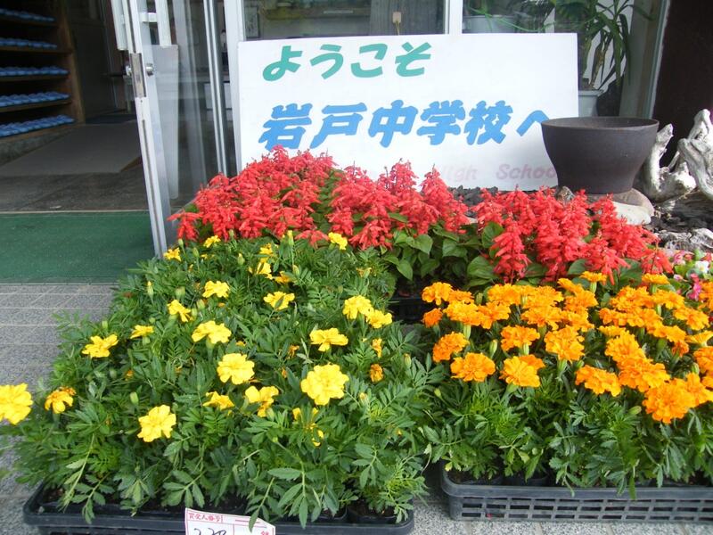 明日の美化活動を前に、中学校に花の苗が届きました。とてもきれいな花ばかりです。生徒が色合いを考えながら、様々な場所に花を植えていきます。