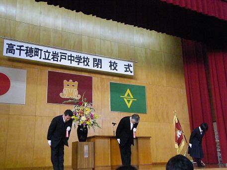 今回をもって岩戸中学校のホームページは終了させていただきます。これまで3万人を超える方々に見ていただき、本当にありがとうございました。1,2年生36名は、4月から新たな気持ちで高千穂中へと向かいます。今後とも温かく見守っていただきますようどうぞよろしくお願いします。また岩戸地区の今後のさらなる発展と皆様のご多幸をお祈り申し上げます。