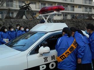 私たちの町の安全を守っていただいている高千穂警察署へ見学に行きました。体験学習も用意していただき、防犯についての知識と心得を学習する有意義な時間となりました。