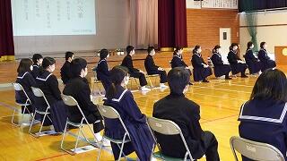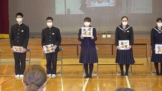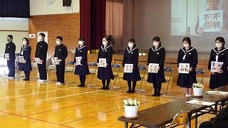 立志式が行われました。自己を振り返り、志を高く持ち、将来の展望や生き方について考えるため、第2学年の生徒一人一人が決意表明を行いました。また、保護者の前に立ち感謝の手紙を読み、保護者も生徒に手紙を読み、感動的な場となりました。
