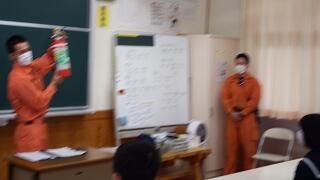 火災を想定した避難訓練が行われました。本校では、避難訓練のたびに避難経路と集合場所を変えています。西臼杵消防本部より消防士の方々に講師として来ていただき、防災についての知識を高める有意義な時間となりました。