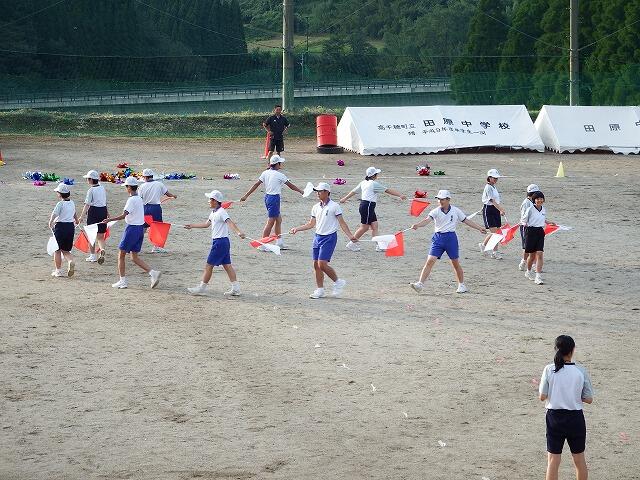 本日は、13日に開催される田原小・中学校合同運動会・体育大会の予行練習でした。本番に向け、気合いの入った行進や応援の姿が見られました。