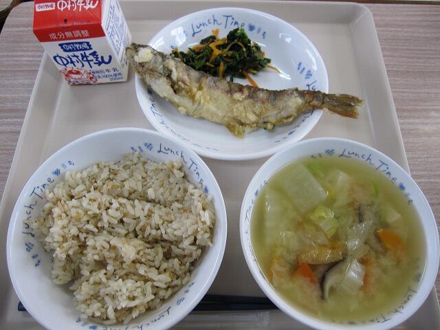 今日はヤマメのからあげ、いなか汁、高千穂茶めしでした。おいしくいただきました。