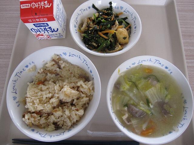 今日は五目釜飯に豚汁でした。おいしくいただきました。