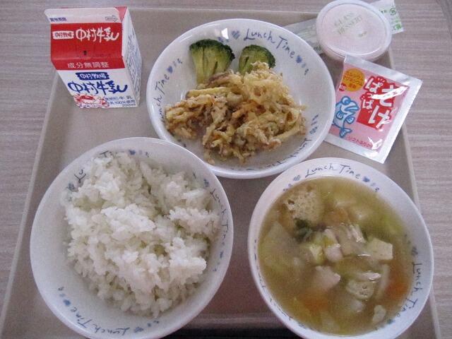 今日は大豆のかき揚げにのっぺい汁でした。おいしくいただきました。