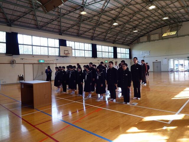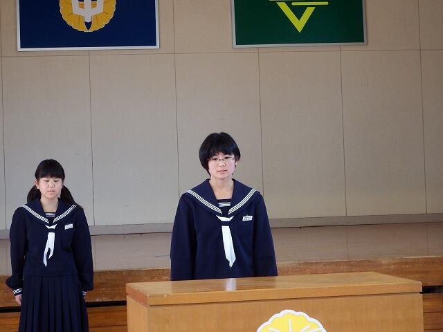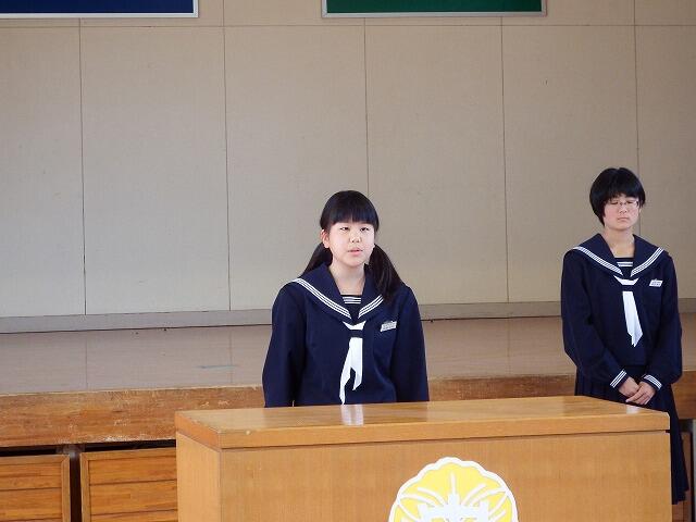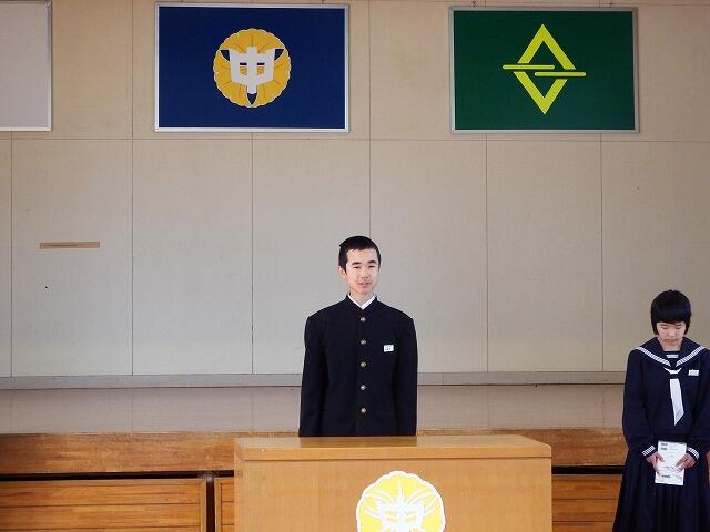 生徒会長の伊東君から,甲斐先生への激励の言葉と田阪先生への歓迎の言葉がありました。