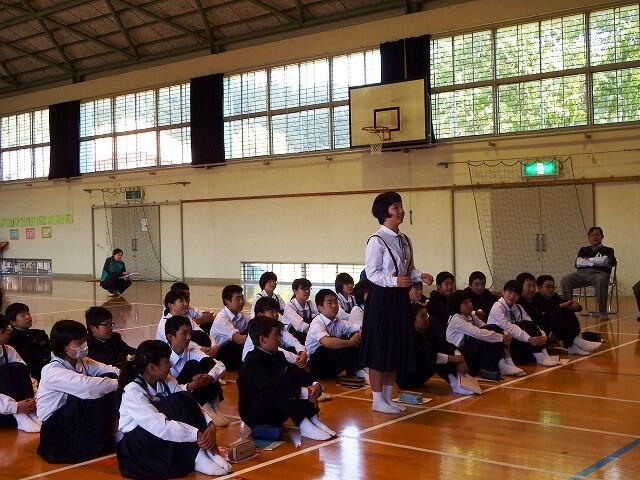 5月18日から,3週間の日程で行われた教育実習が終了しました。実習生の工藤先生から,お別れのあいさつをいただき,生徒会長の伊東君から激励のことばと生徒全員からのメッセージが手渡されました。