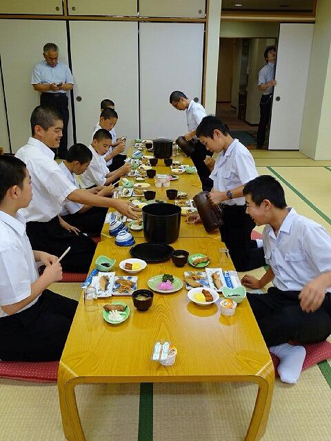 京都の宿舎に到着しました。みんなで夕食です。いただきます。