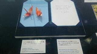 先月オバマ大統領が広島訪問された際のメッセージと折り鶴も見ました。
