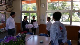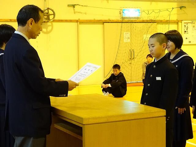 生徒を代表して、生徒会長・副会長が受け取りました。