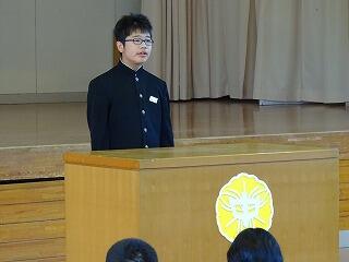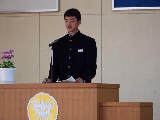 在校生歓迎の言葉では、本校生徒会長が先輩として優しく迎える言葉を述べてくれました。