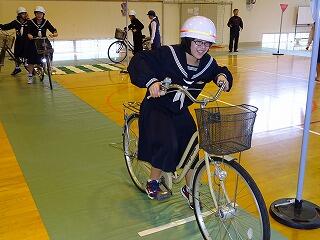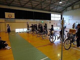 自転車点検の後、体育館内に設置されたコースをそれぞれ自転車で走行しました。