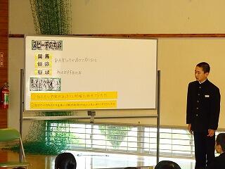 安全教室があり、駐在所・交通安全協会より講師を招いて指導していただきました。
