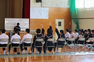 本日5校時に高千穂警察署から講師を招いて薬物乱用防止教室を実施しました。