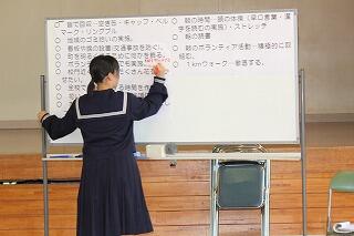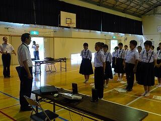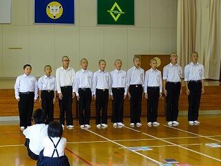 明日から実施される地区総合体育大会の推戴式を朝の集会で行いました。