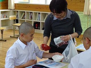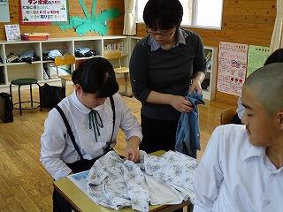 日赤奉仕団田原分団の方々より、学校へ手縫いの雑巾と足ふきをいただきました。