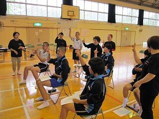 まず体育館で生徒会主催の歓迎集会を実施し、レクリエーションを楽しみました。
