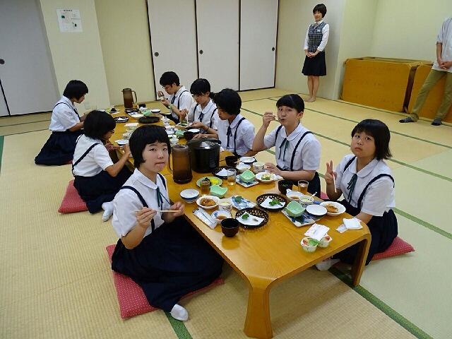 京都の宿舎に到着しました。みんなで夕食です。いただきます。