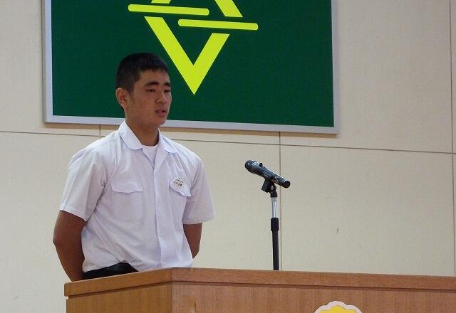 生徒を代表して生徒会副会長から激励の言葉が贈られました。