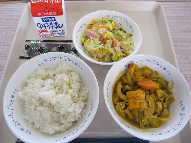 今日は、かぼちゃのそぼろ煮と中華サラダでした。おいしくいただきました。