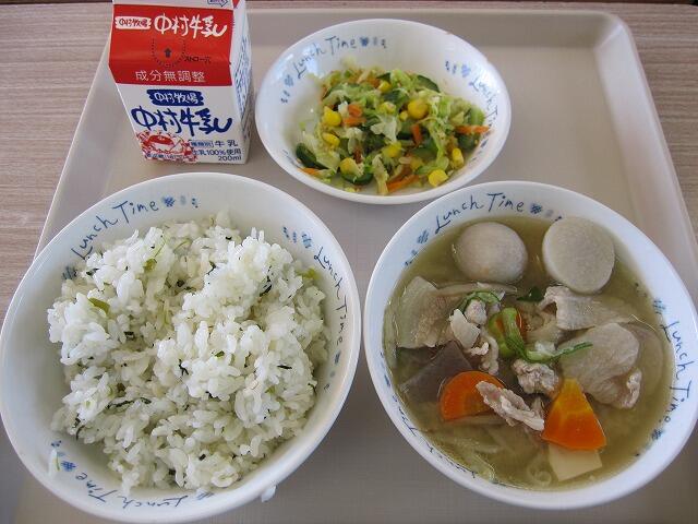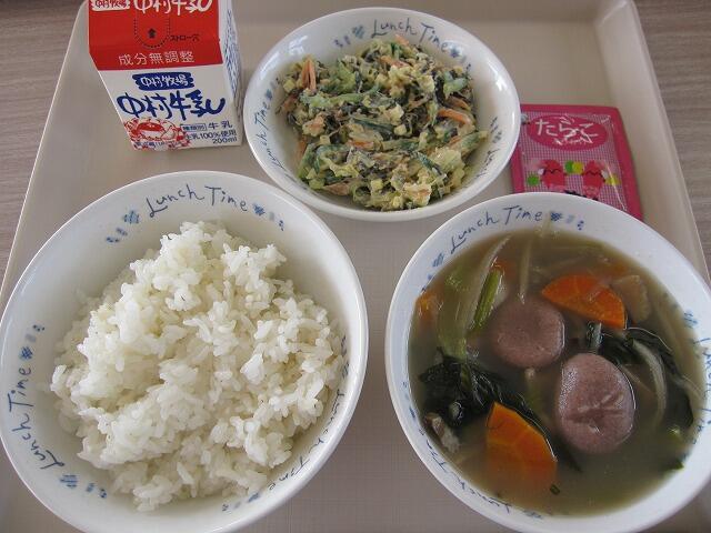 今日はきび団子汁に納豆サラダでした。おいしくいただきました。