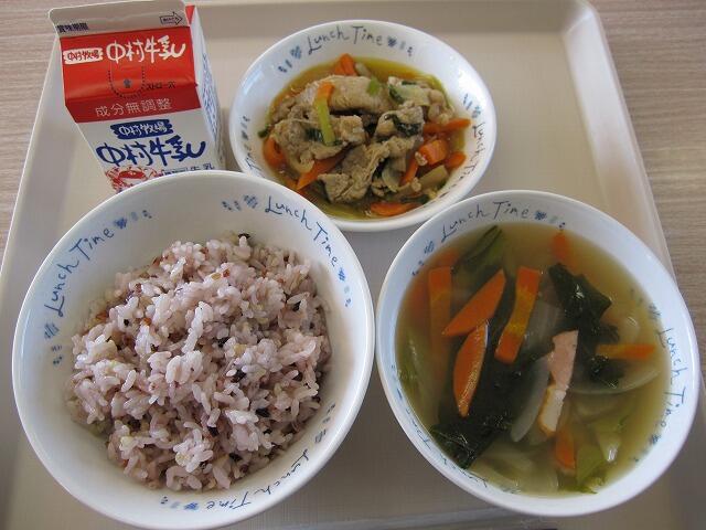 今日は、雑穀ごはんに豚肉のしょうが焼き、五目スープでした。おいしくいただきました。
