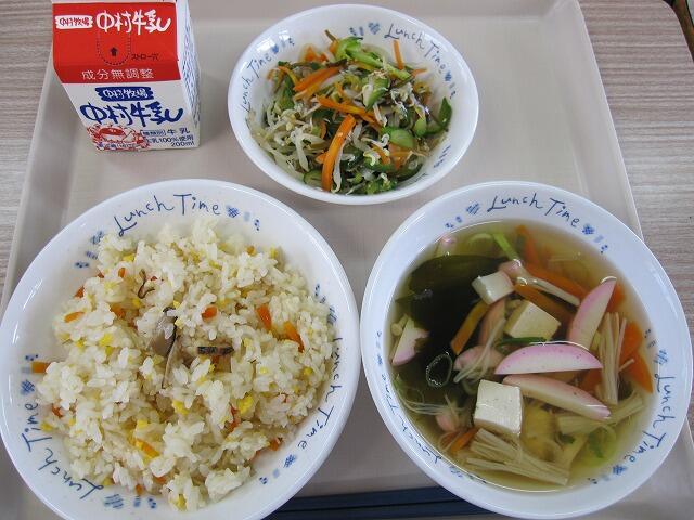 今日は、栗、しいたけ、しめじ、きくらげ等々入った「秋の香りごはん」でした。