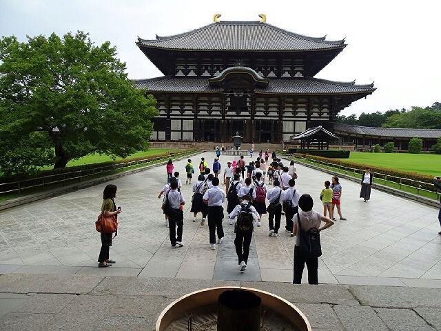 奈良公園に到着しました。歴史の授業で学習した,東大寺の大仏や東大寺南大門など大きくて迫力がありました。