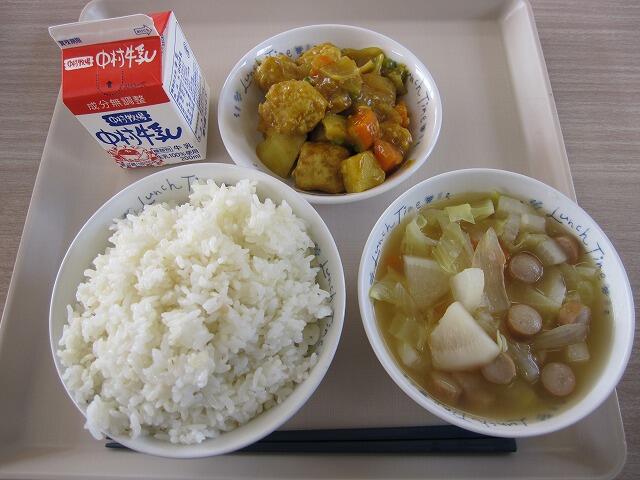 今日は、鶏団子のカレー煮にカブのスープでした。おいしくいただきました。