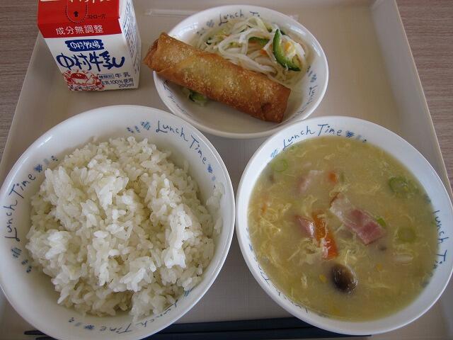 今日は中華コーンスープに春巻きでし。からだもあたたまり、おいしくいただきました。