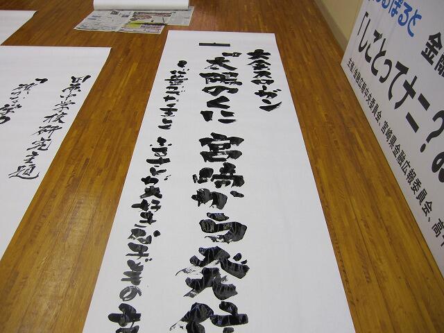 今日は、九州へき地研究会に向けて、書道の先生(プロ)に来ていただいて、看板を作成していただいてます。