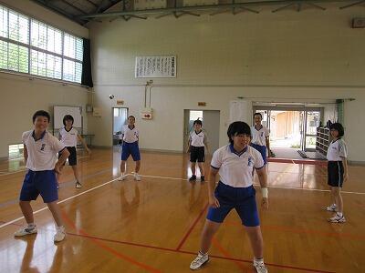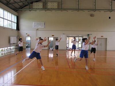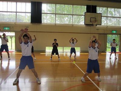 今日は雨の中、全校生徒集まってダンスの練習をしています。