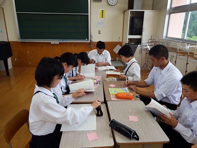本日の5時間目,全校生徒が参加しての英語科暗唱コンテストが行われました。生徒は1ヵ月ほどの練習期間を経て,本番に臨みました。1年生は,学習していない単語も含まれていましたが,声の大きさや話すスピードなどに気を配り,身振り手振りを加えながら堂々と発表することができました。ALTのトリシア先生にも審査に加わってもらい,成績上位の生徒は,西臼杵郡英語暗唱・弁論大会に出場することになります。なお,生徒全員の発表の様子は学校アルバムにあります。