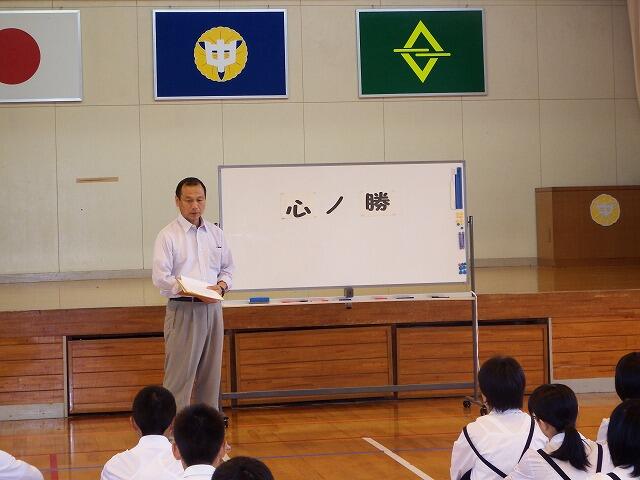 校長先生から「心ノ勝」という言葉が贈られました。自分自身の心を満足させることが重要であり,心が勝つことができれば,必勝につながると話してくださいました。