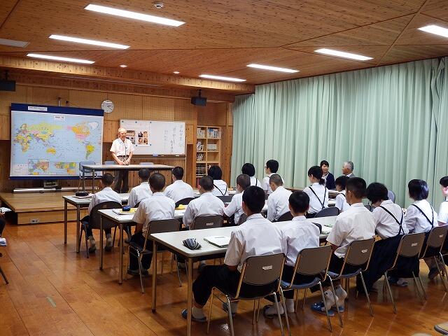 本日,2年生は午後から上野中学校に移動し,合同で平和学習会を行いました。日本軍に徴兵され,東南アジアで終戦を迎えられた岡田都男さんに,戦時中の話や終戦後捕虜として過酷な生活を送った経験など貴重な話を伺いました。平和について考える良い機会になりました。
