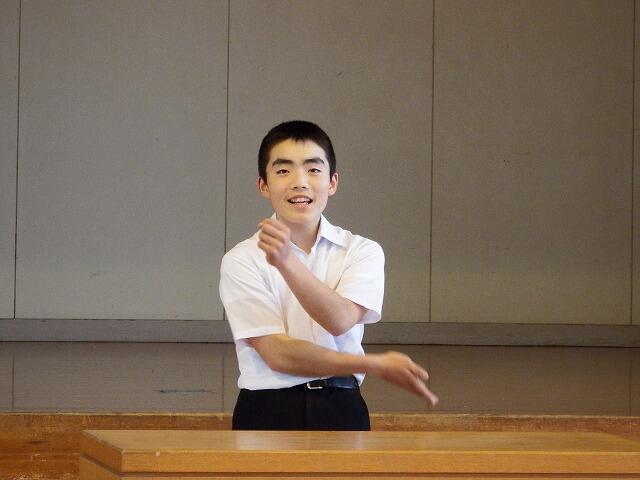 生徒会長の伊東君から,甲斐先生への激励の言葉と田阪先生への歓迎の言葉がありました。